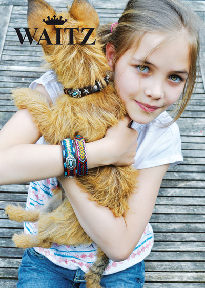 Waitz design 15 mm /0.59 inch wide dog collar for smaller to medium dogs , handmade with soft italian prime leather , and finished with our vintage styled antique finished silver conchos and parts.