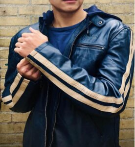 Waitz Design black lamb leather jacket with gold striping 🙂 (SAMPLE)